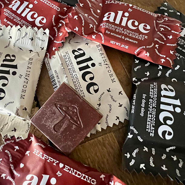 Prefer a full supply? Try the Happy Ending Tin with 16 delicious mushroom chocolate squares.